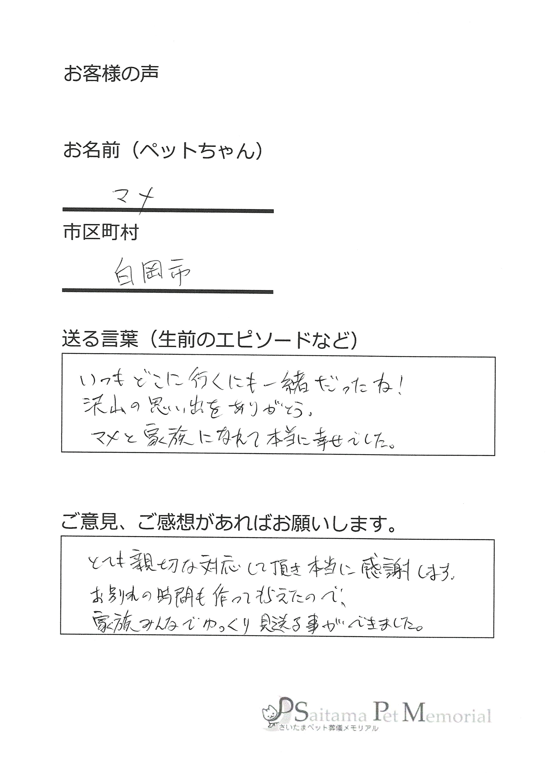 いちもどこに行くにもいっしょっだったね。沢山の思い出をありがとう。マメと家族になれて幸せでした。
