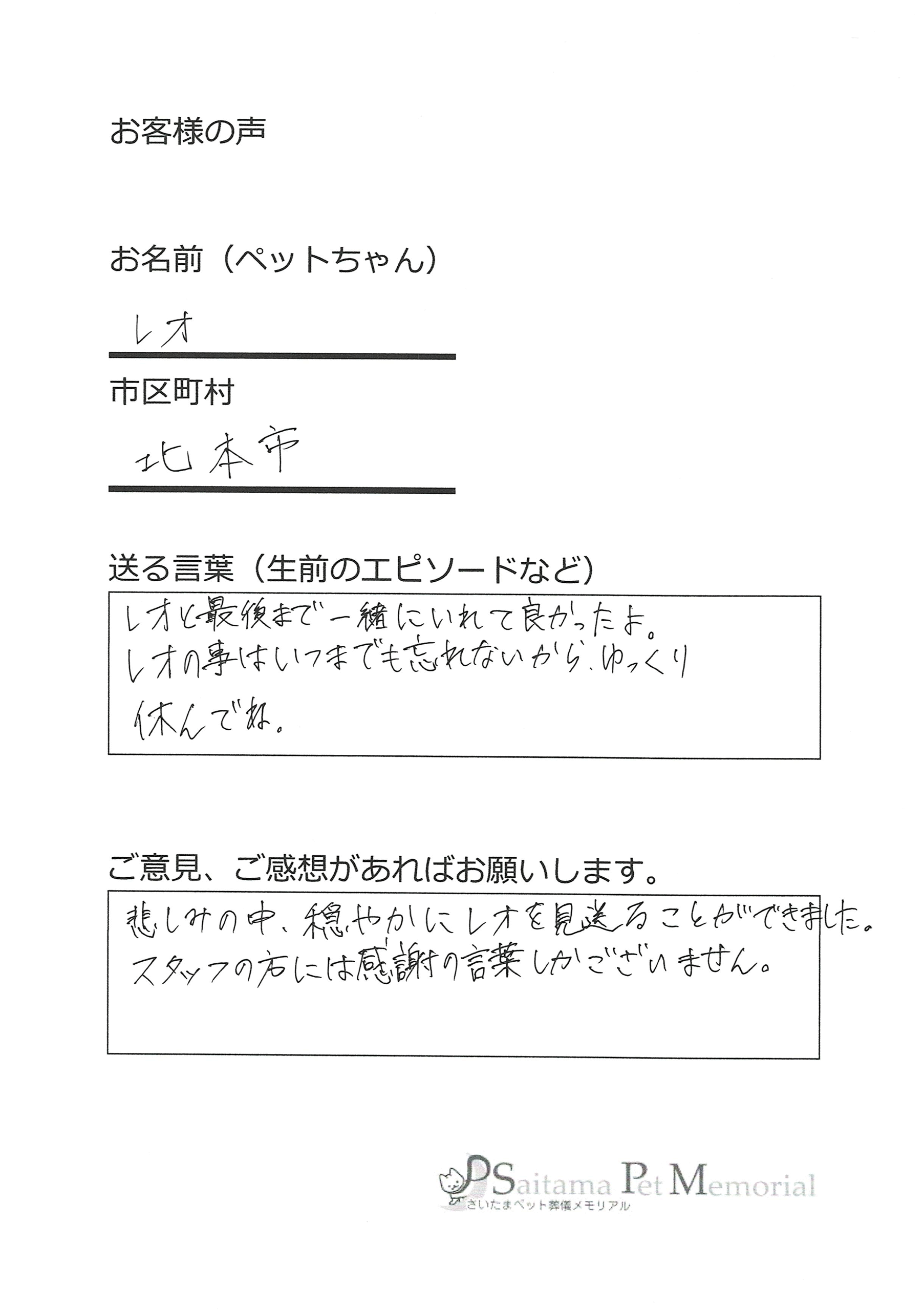 レオと最後まで一緒にいれて良かったよ。レオの事はいつまでも忘れないからゆっくり休んでね